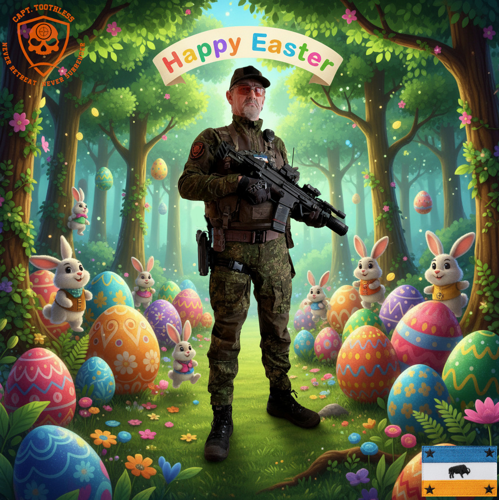 These are violent times so we, the Elbonian Defense Force, took it upon ourselves to dispatch a detail protect the easterbunny and make sure children get the eggs, chocolate and real, they deserve.